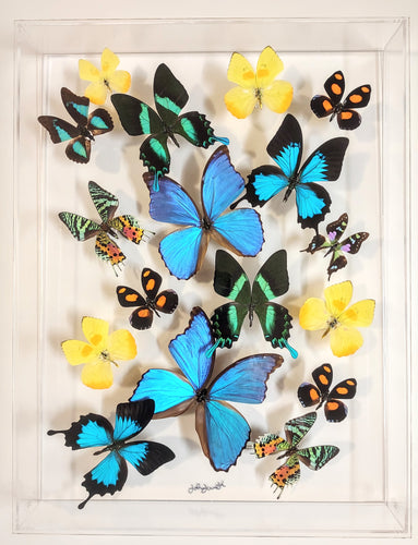 We have been designing butterfly displays for 30 years and take great pride in the quality of our work, so each butterfly creation is signed. Our processing time in 3-5 business days. Enjoy this collection of 15x20 inch framed butterflies.