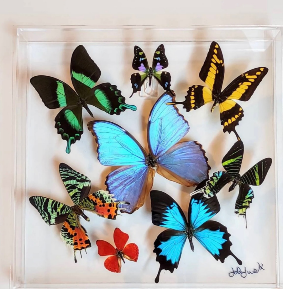 Custom order. One butterfly display 20x30 s with two butterflies replaced as seen in custom order link photo. To each 12 x 12s also seen in custom ordering photos. Sale price. $959.20 for the 20 x 30 and 256 each for the 12 x12s . Three butterfly displays total. $1471.20 + $90 shipping = 1561 2
