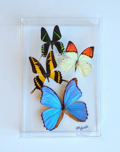 Framed Butterflies, Framed Butterfly Displays and Butterfly Taxidermy Art from all over the world. Our butterfly collection features a variety of framed butterflies, insect & butterfly taxidermy art from many regions of the world. Ethically obtained butterflies bred in environments with conservation and sustainability in mind. Our mounted butterflies are treated and preserved to avoid decomposition over the years. These preserved butterflies are designed last a lifetime. Their durability allows us to ship our butterfly artwork all over the world without damage.